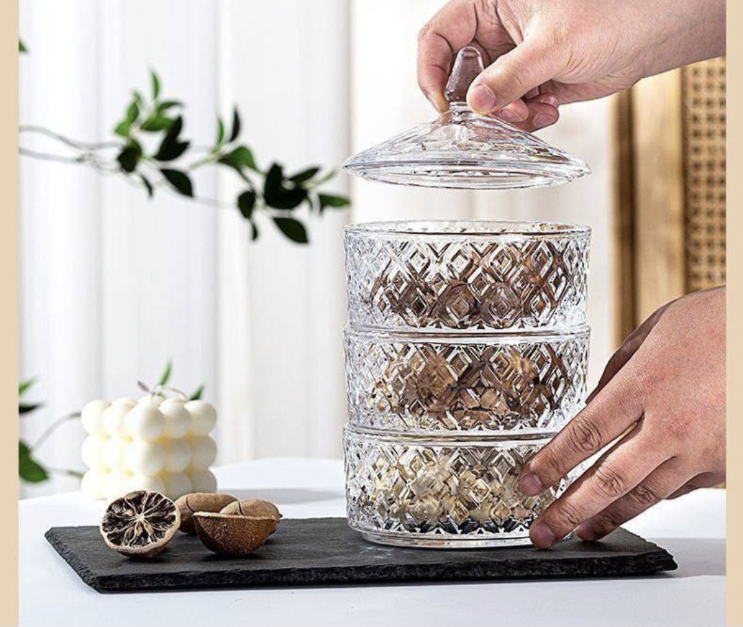 اگر به دنبال ترکیب زیبایی و کارایی هستید، این اردو خوری بهترین انتخاب است. سه طبقه بودنش فضای کافی برای قرار دادن تنقلات مختلف را فراهم میکند و درب شیشهای آن باعث میشود مواد داخل ظرف تازه بمانند. طراحی کریستالی محصول جلوهای لوکس دارد و با هر دکوراسیونی هماهنگ میشود. در کل، هم برای مصرف روزمره مناسب است و هم هدیهای خاص برای عزیزانتان به شمار میآید.