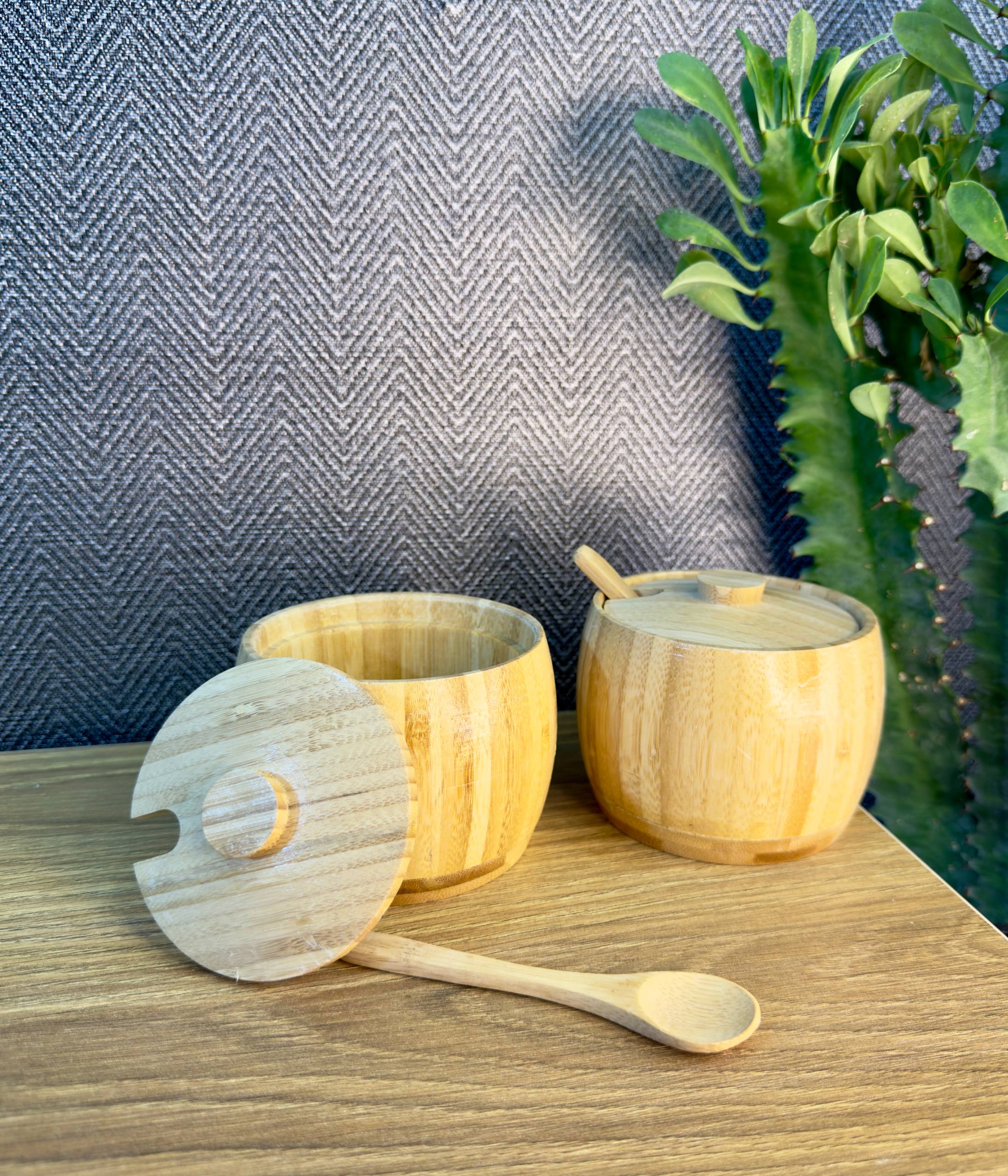 تعداد قطعات: یک عدد جاشکری + درب بامبو + قاشق بامبو مناسب برای شکر، نمک، ادویه یا عسل